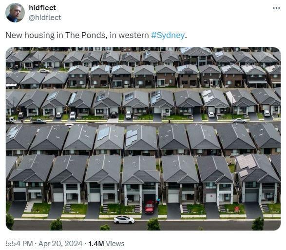 Australians have the largest houses in the world. They’d literally rather buy this slop built on unironic floodplain 75 minutes from their workplace in cracktown rather than live in an apartment lol.