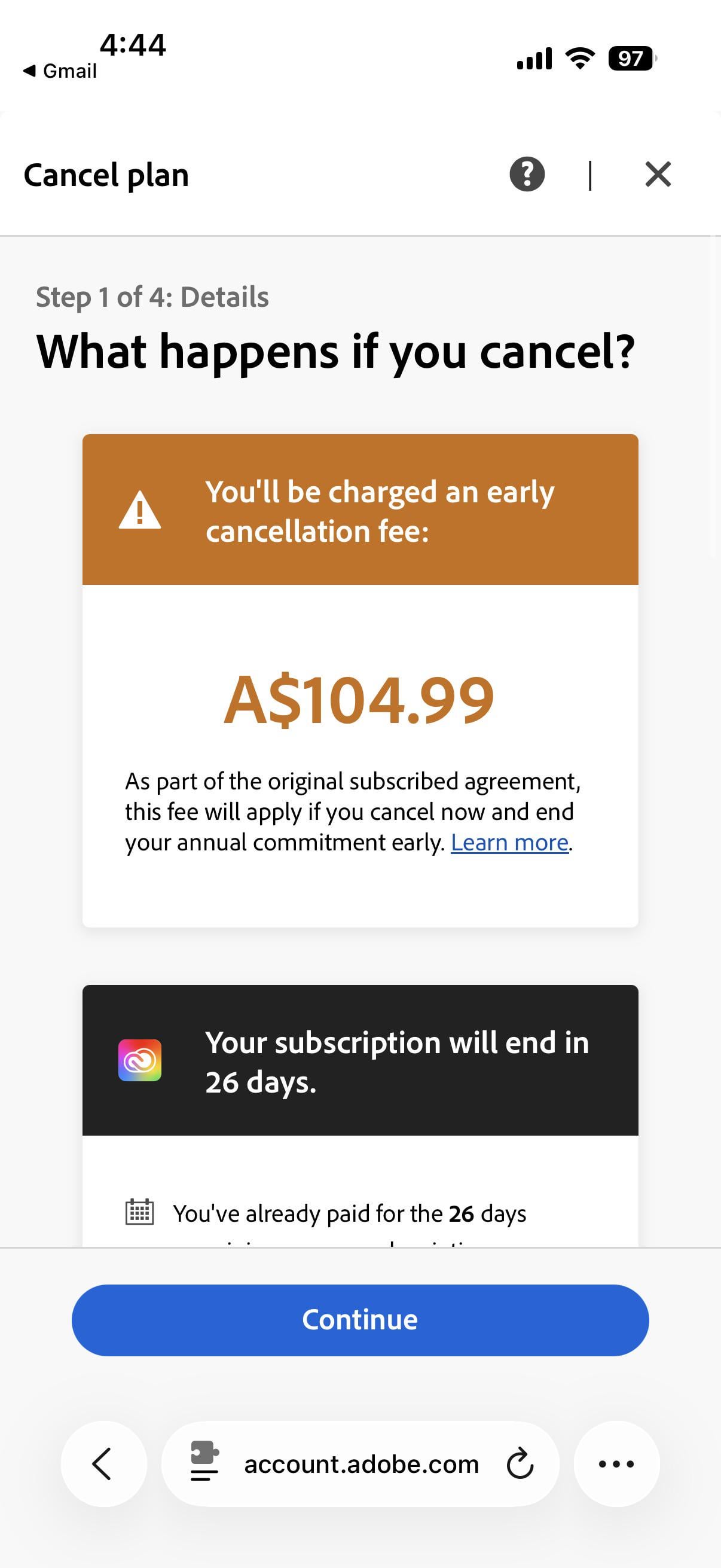 I wanted to cancel my adobe subscription and i must pay extra???? When the sole reason i canceled is to save money..