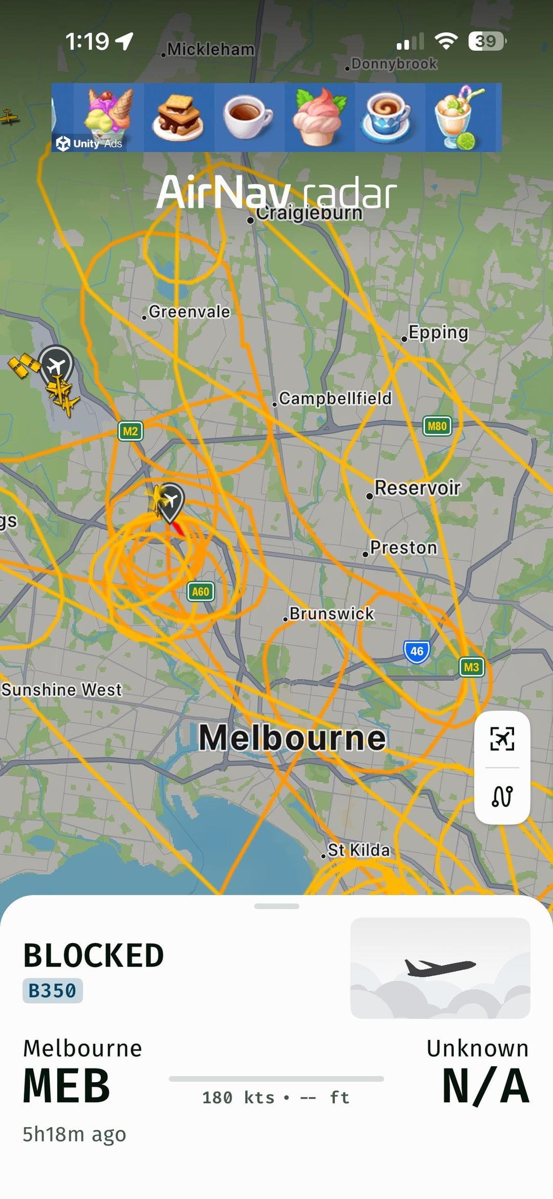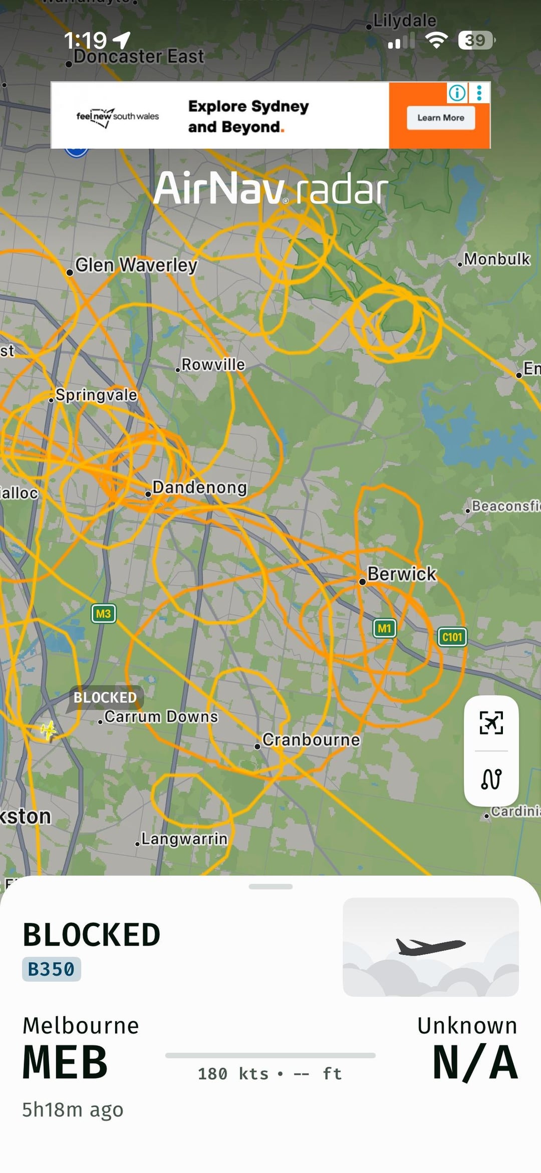 So many time it crossed the Essendon airport – then travelled all the way to Korumburra, and now it’s just looping around everywhere.