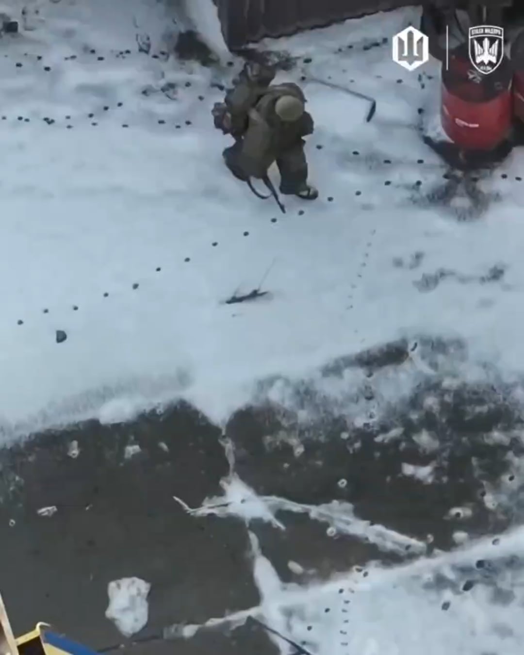 A Ukrainian FPV drone targeted a Russian soldier who had taken shelter inside a hangar, striking him as he hid among fuel barrels. #hm #hmintelligence