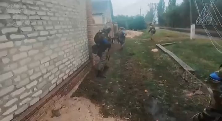 Ukrainian soldier pre-firing at a Russian soldier hiding in a toilet in a town east of Kupyansk. (Early War)