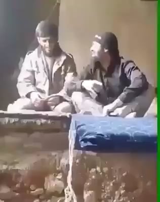 Syrian rebels singing in a house are interrupted by rockets/artillery landing outside. Unknown 2015-2024