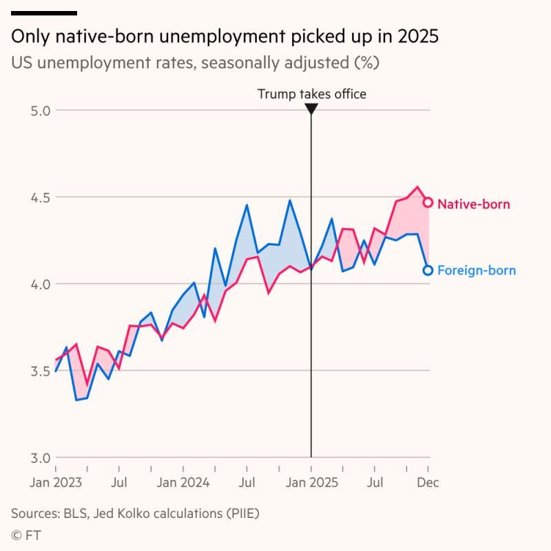 The native-born unemployment rate worsened last year, while the rate for foreign-born workers held steady Source: Slappatuski