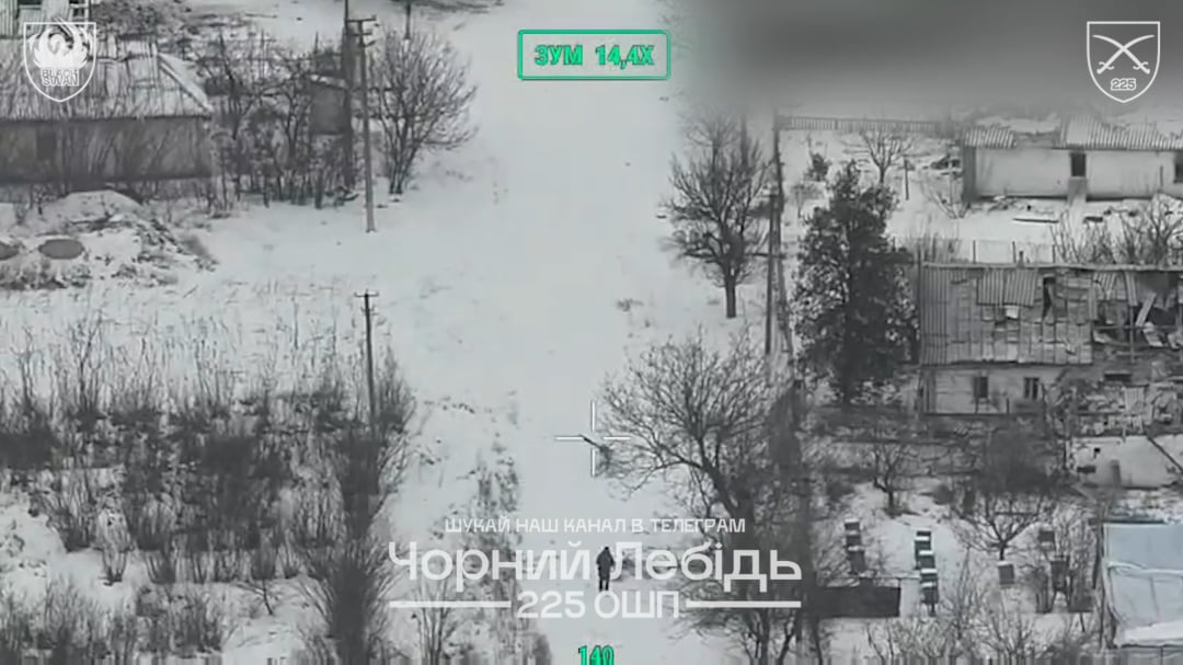 Four FPV drones and two drops targeted a single Russian soldier. Three units competed for the kill, but two drones failed to detonate and the drops exploded about 10 meters away, causing no significant damage. Published by Ukraine’s “Black Swan” unit, 225th Assault Regiment, 25.01.2026.
