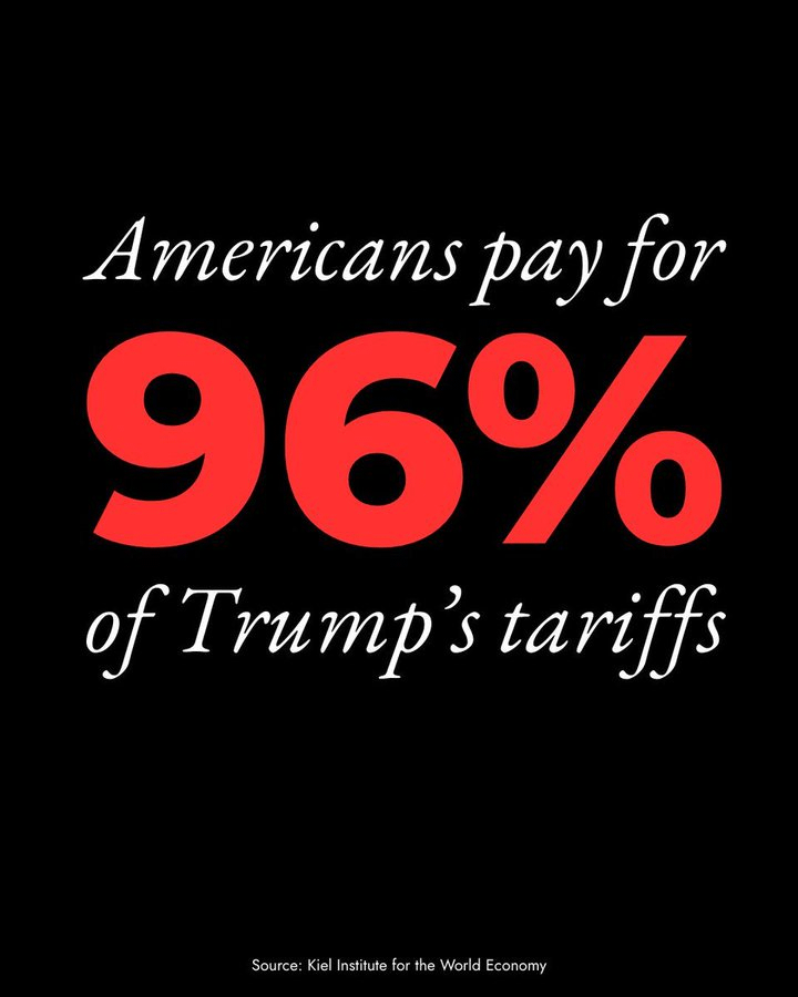 😱 96% of Trump’s tariffs are paid by Americans… Foreign exporters absorb only 4% of the tariff burden. The remaining 96% is passed on to American buyers. Tariffs function as a tax on American consumption. A transfer of wealth from US households… to the US Treasury.
