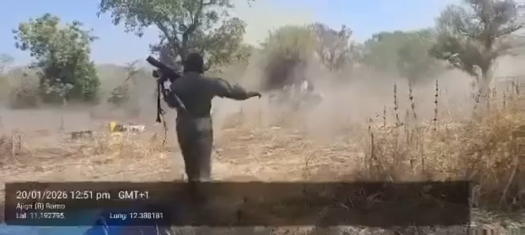 🌐 Location: #Borno_State #Nigeria 🕰 Date: 1/20/2026 📝 Description: Nigerian military forces record themselves getting struck by a SVBIED, during clashes with IS-WAP jihadists, in the “al-Faruq” area of Sambisa Forest, Borno State 📖 Additional info: 11.193795, 12.388818