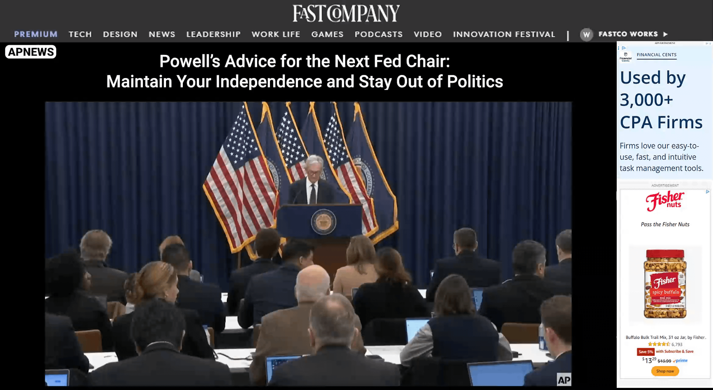 Powell’s Advice for the Next Fed Chair: “Maintain Your Independence” and “Stay Out of Politics” Source: DumbMoneyMedia