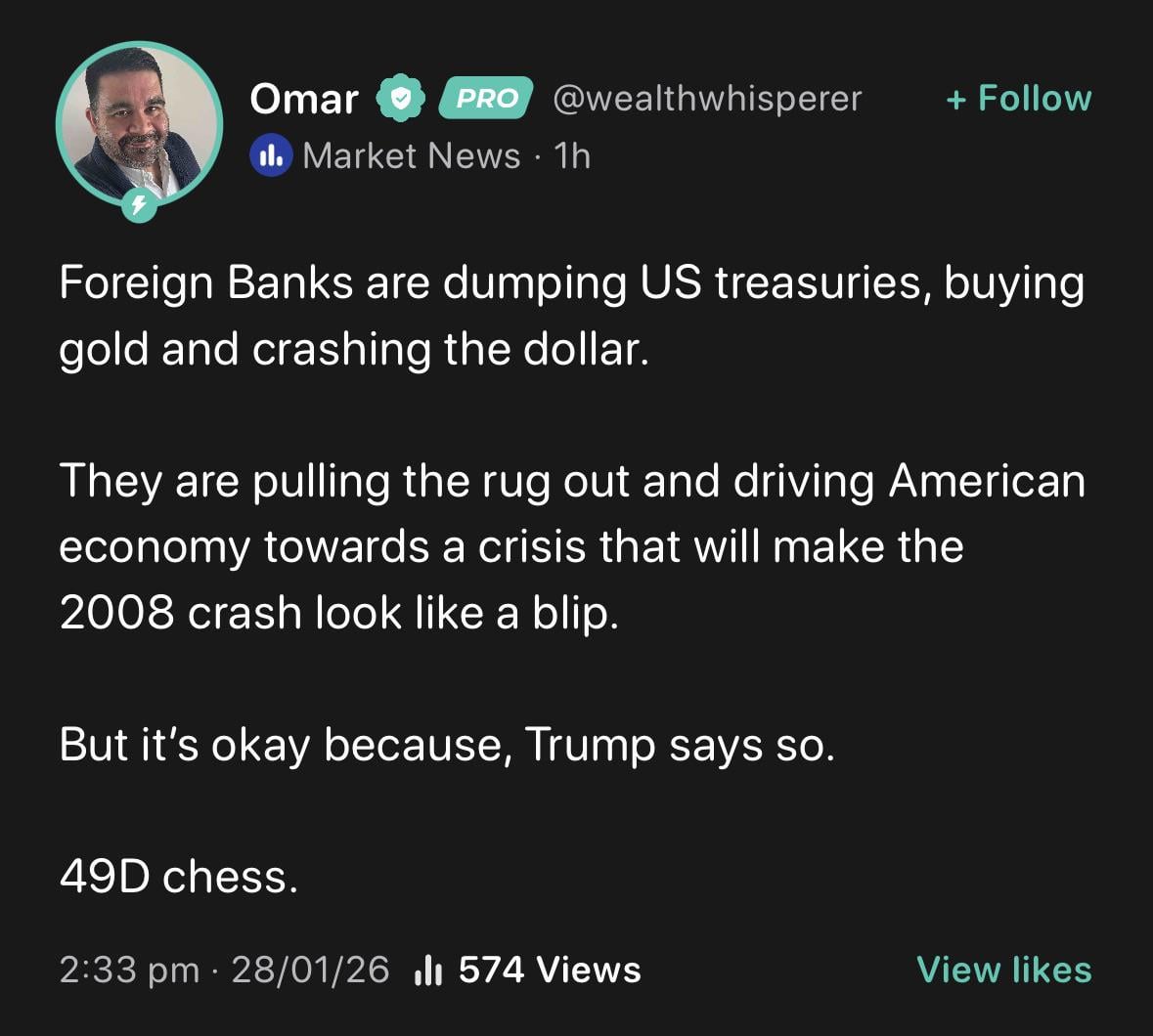 Sure its foreign banks that are just losing trust in the dollar for no other reason than to rug pull. /s