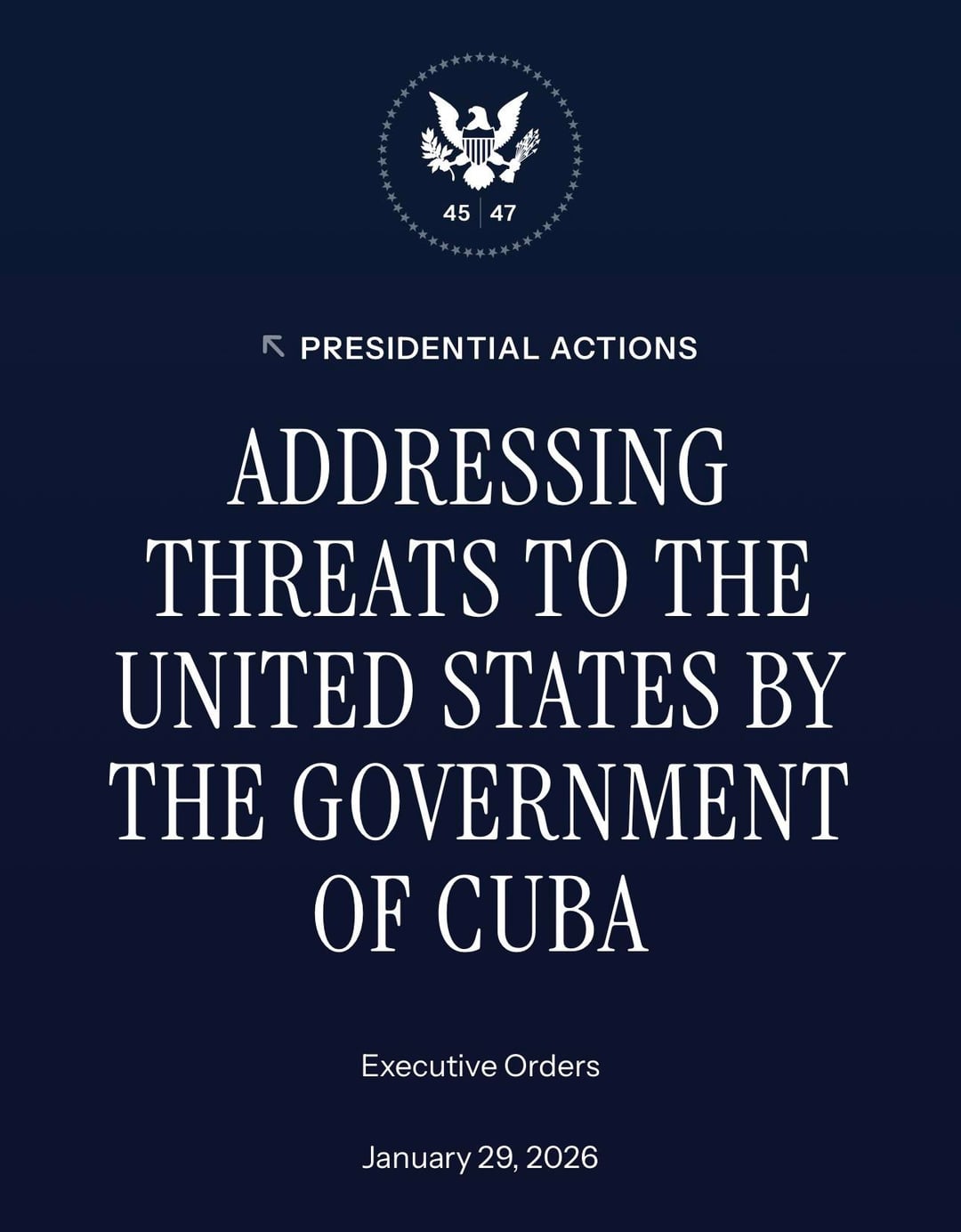 https://www.whitehouse.gov/presidential-actions/2026/01/addressing-threats-to-the-united-states-by-the-government-of-cuba/ Source: mounwp