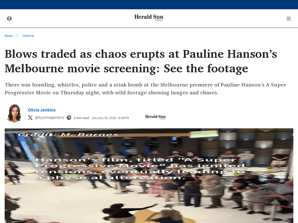 Blows traded as chaos erupts at Pauline Hanson’s Melbourne movie screening: See the footage Source: HotPersimessage62