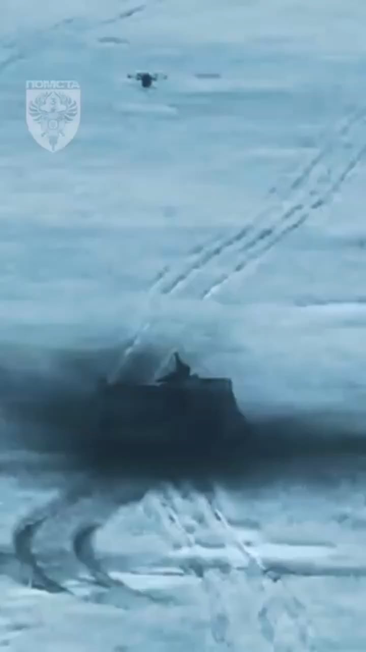 Footage showing a Ukrainian heavy bomber UAV successfully destroying a disabled Russian “turtle” tank. Donetsk Oblast. Source: MilesLongthe3rd