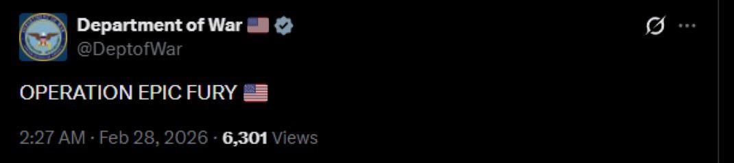 Department of War (DOW): “OPERATION EPIC FURY πΊπΈβ