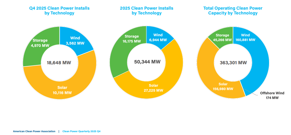 U.S. clean power adds record 50 GW in 2025, capturing 90% of new grid capacity Source: ObtainSustainability