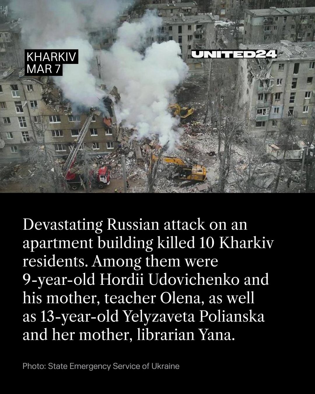 The International Paralympic Committee allowed Russia to compete under its flag for the first time since 2014. Hours later, Russians struck a residential building in Kharkiv, killing 10 people, including two children.