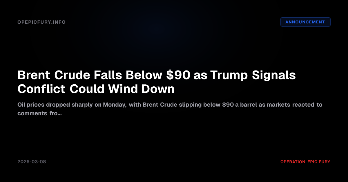 Brent Crude Falls Below $90 as Trump Signals Conflict Could Wind Down