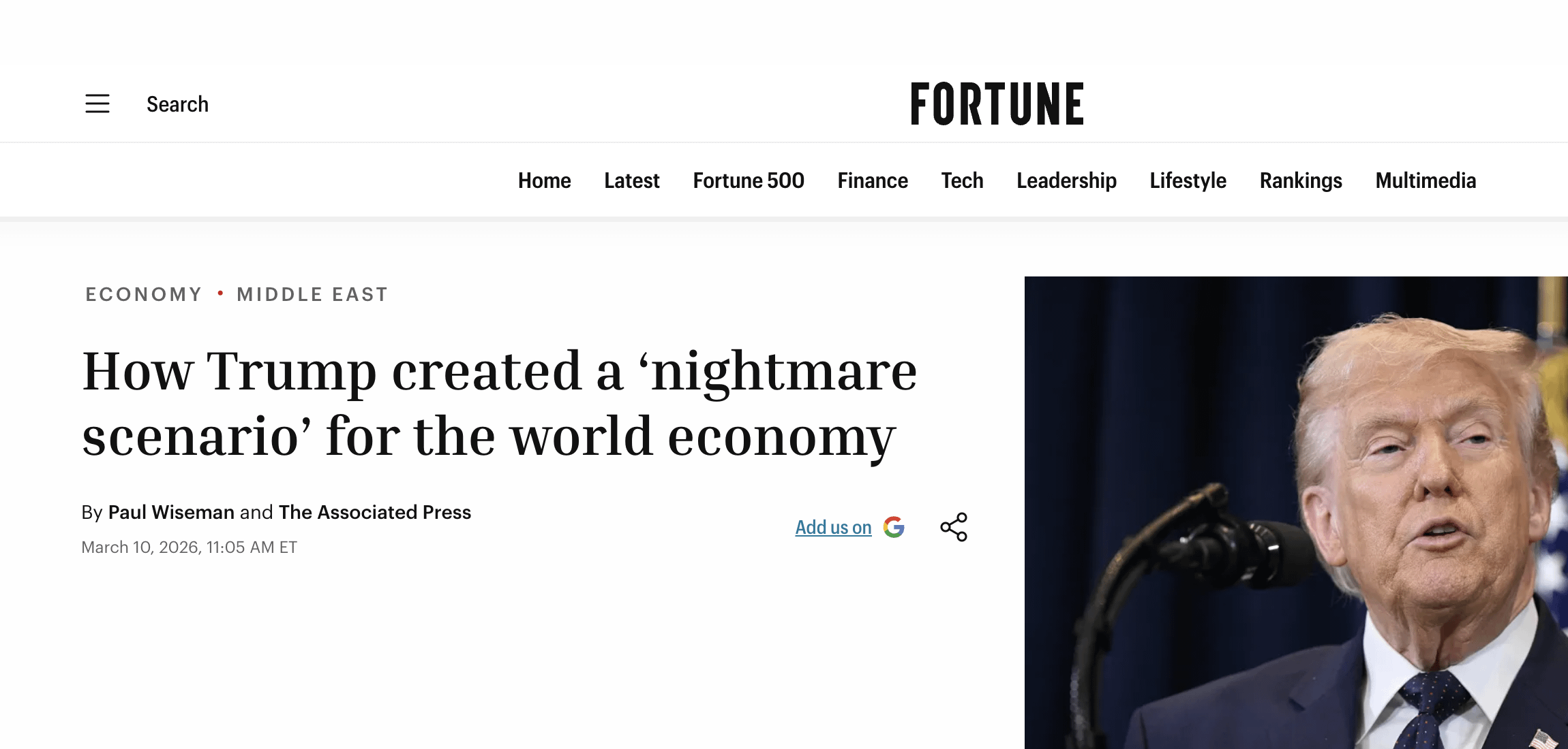 The U.S. is shedding jobs, GDP growth is slowing, and inflation is ticking up. Naturally, the best thing to do in such a situation is start a costly war that increases the price of gas 50 cents a gallon in a week and will have ripple effects through the whole economy. 🙃