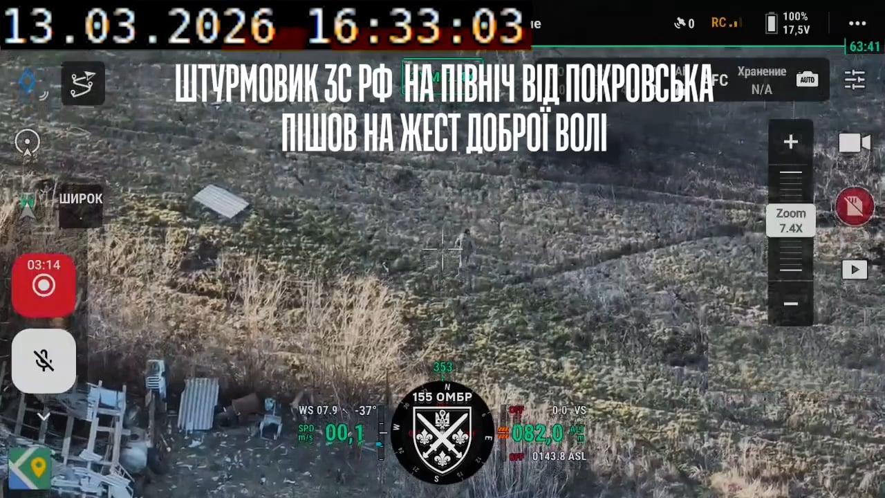 На відео ви бачите «останній поцілунок путіна». Так, у цього явища навіть назва вже є, бо випадки не поодинокі. Виконує — черговий штурмовик ворога на півночі від Покровська.