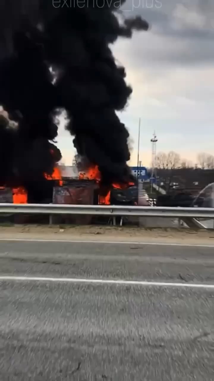 The oil depot in Labinsk is still burning a day after Ukrainian drones hit the site. Krasnodar Krai – March 2026