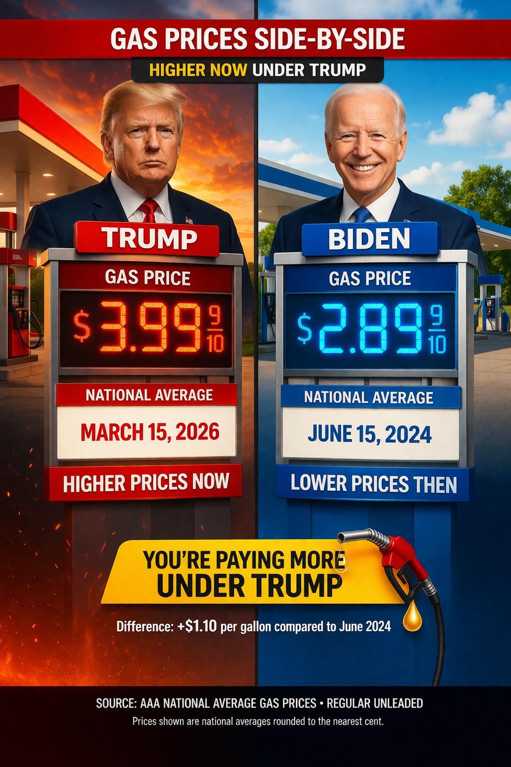 Comparing a low from Biden to a high of Trump discredits your entire point. Average price from 2021-2025 under Biden in 2026 dollars was $3.89. That’s the average, it would have been that price everyday. Two days of Trump’s average being over that still makes it significantly less than Bidens 4 years. Let’s see where it goes, maybe Trump’s average goes over Biden’s, but we don’t know yet, we only have 2 days of a Trump price being over Biden’s antire average. Don’t forget Biden’s high was $5.02, which is $5.58 in 2026 dollars.