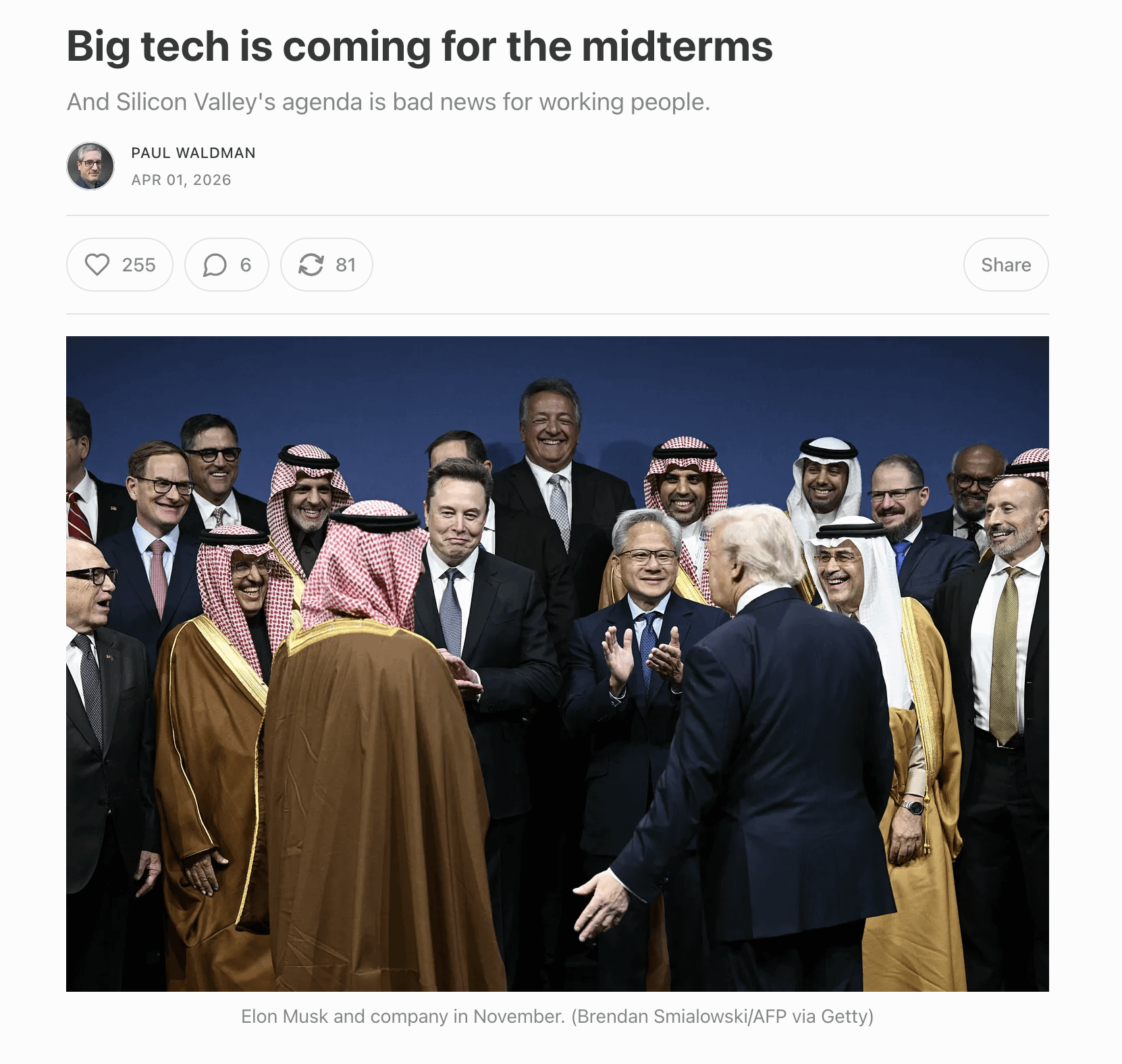 Big Tech is pouring hundreds of millions of dollars into the midterms, to make sure they go unregulated and they don’t have to pay more taxes to deal with the consequences of the technology they create.
