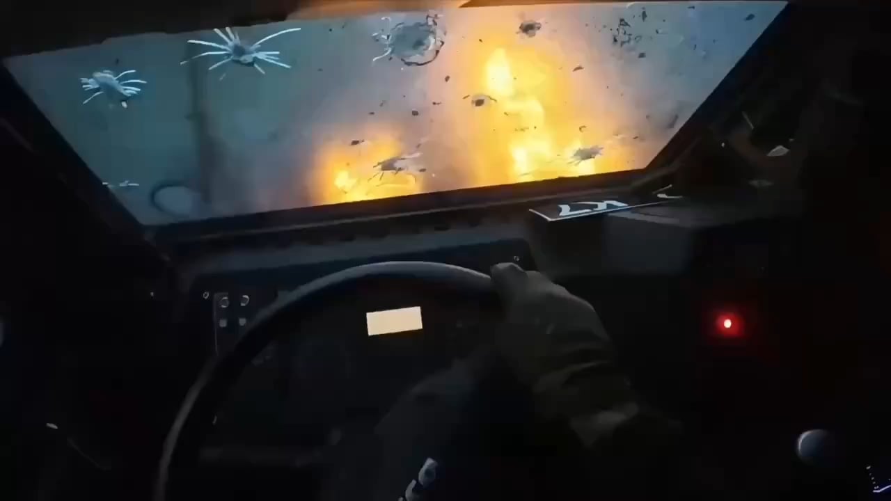 First-person footage from inside a Ukrainian Iveco LMV getting hit by a Russian FPV UAV. Because of the armor of the vehicle and the additional anti-drone cage, the vehicle, the driver, and the passengers not only survived the attack but could continue their mission.